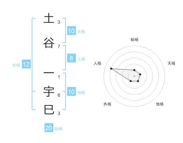 土谷 一宇巳さんを姓名の画数から五運を鑑定