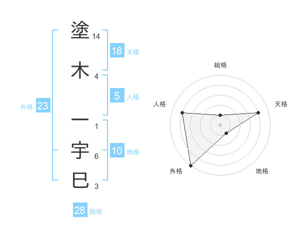 塗木 一宇巳さんの外格は23画の5点!