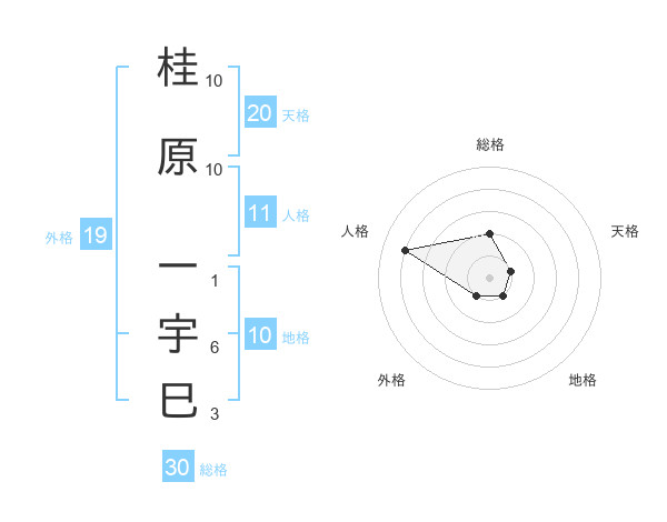 桂原 一宇巳さんの総格は30画の2点!