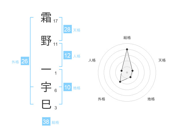 霜野 一宇巳さんを姓名の画数から五運を鑑定