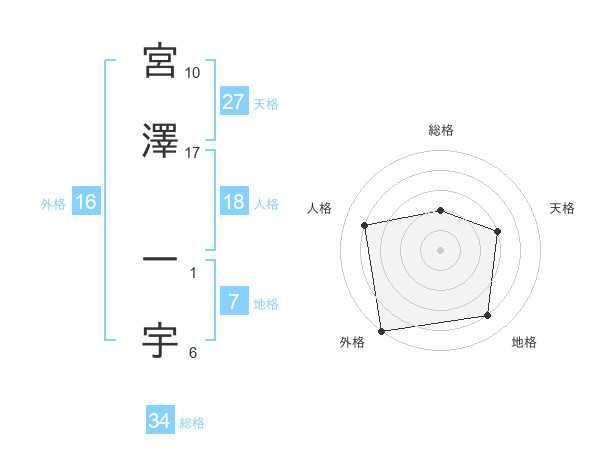 宮澤 一宇さんを姓名の画数から五運を鑑定