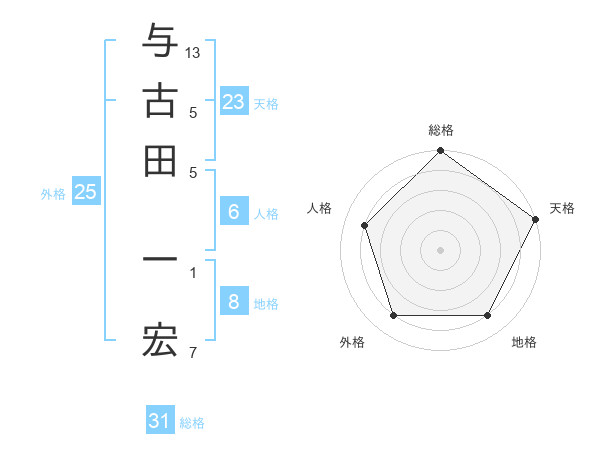 与古田 一宏さんの天格は23画の5点!