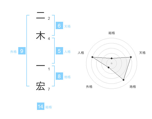 二木 一宏さんの天格は6画の4点!