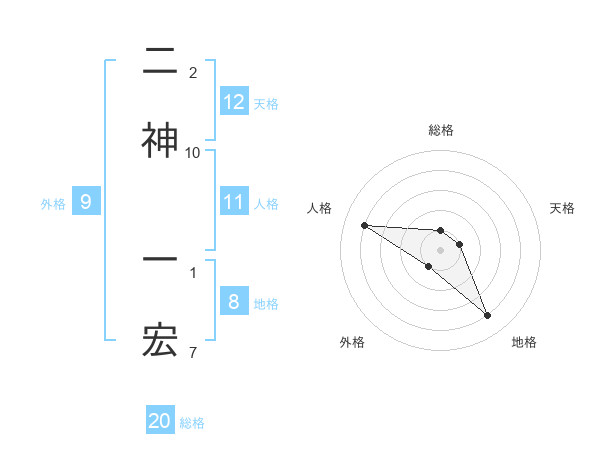 二神 一宏さんの総格は20画の1点!