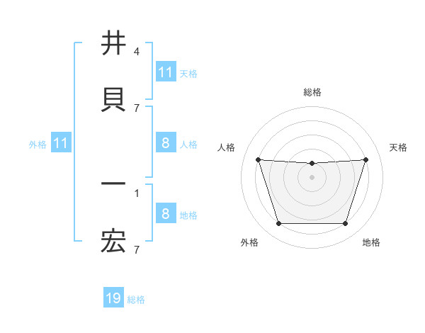井貝 一宏さんを姓名の画数から五運を鑑定