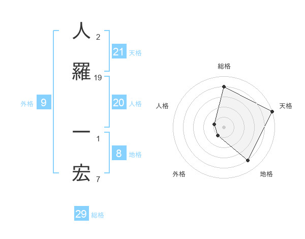 人羅 一宏さんを姓名の画数から五運を鑑定