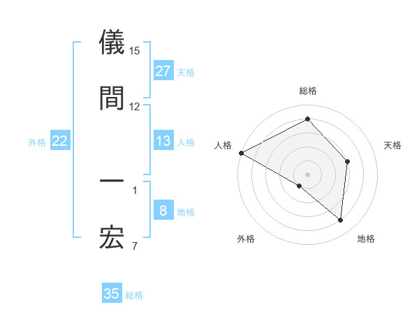 儀間 一宏さんを姓名の画数から五運を鑑定