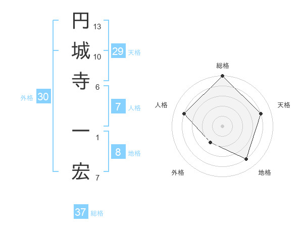 円城寺 一宏さんの総格は37画の5点!