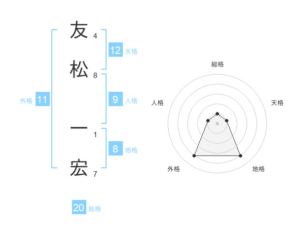 友松 一宏さんの総格は20画の1点!