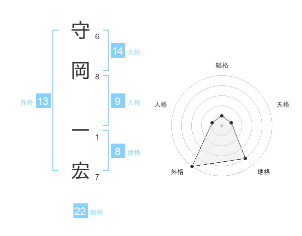 守岡 一宏さんの外格は13画の5点!