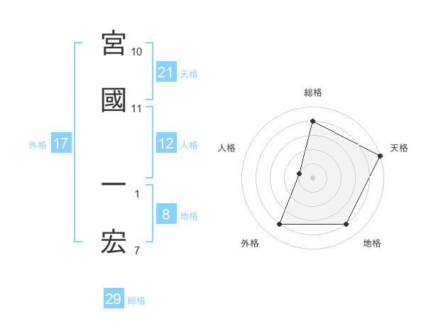 宮國 一宏さんを姓名の画数から五運を鑑定