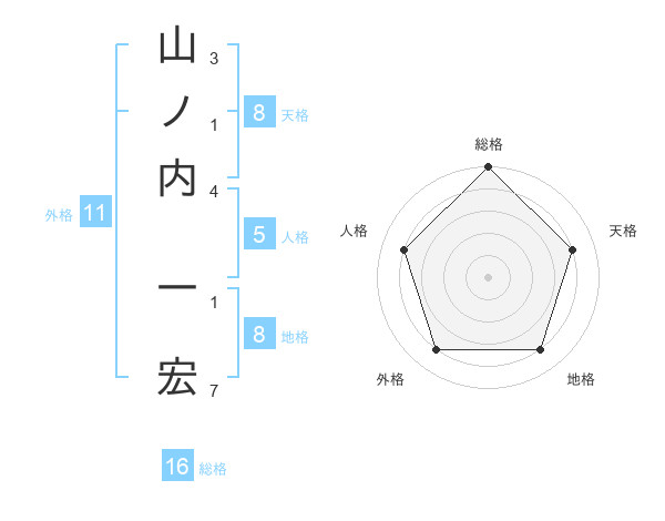山ノ内 一宏さんを姓名の画数から五運を鑑定