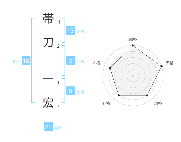 帯刀 一宏さんを姓名の画数から五運を鑑定