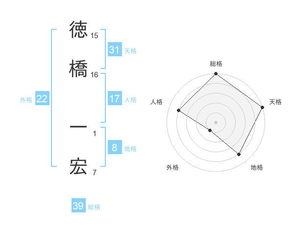 徳橋 一宏さんの総格は39画の5点!