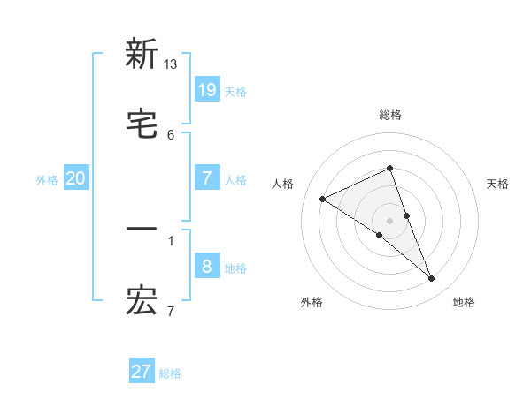 新宅 一宏さんの総格は27画の3点!