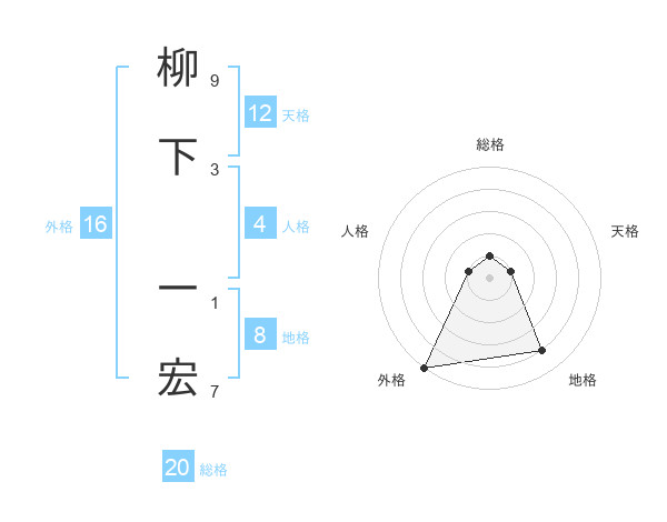 柳下 一宏さんの天格は12画の1点!