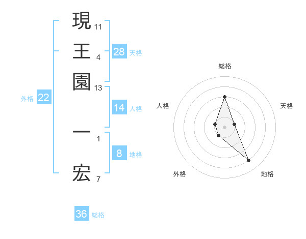 現王園 一宏さんの天格は28画の1点!