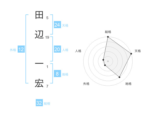 田辺 一宏さんを姓名の画数から五運を鑑定