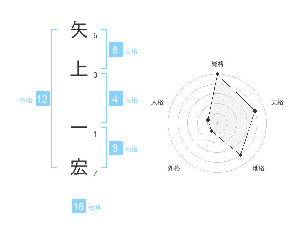 矢上 一宏さんの総格は16画の5点!