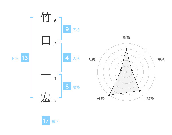 竹口 一宏さんの総格は17画の4点!
