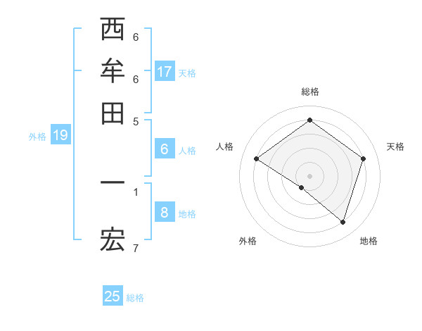 西牟田 一宏さんの総格は25画の4点!