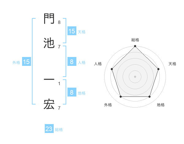 門池 一宏さんの総格は23画の5点!
