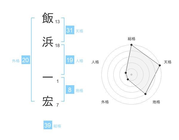 飯浜 一宏さんの天格は31画の5点!