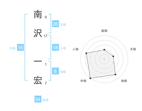 南沢 一宏さんの外格は16画の5点!