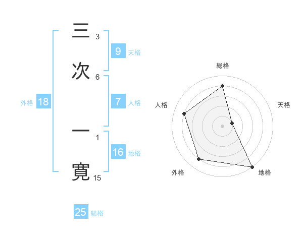 三次 一寛さんの総格は25画の4点!