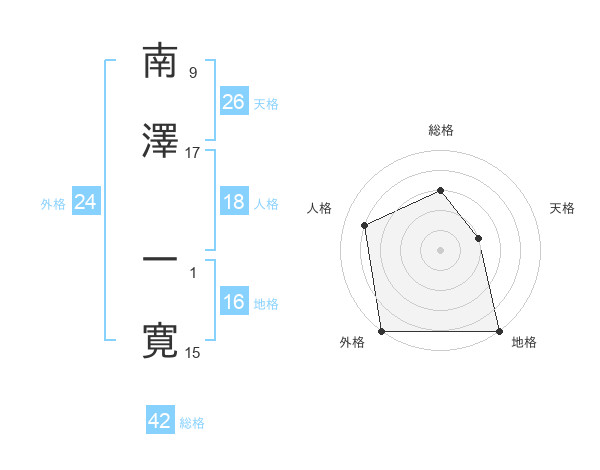 南澤 一寛さんの総格は42画の3点!