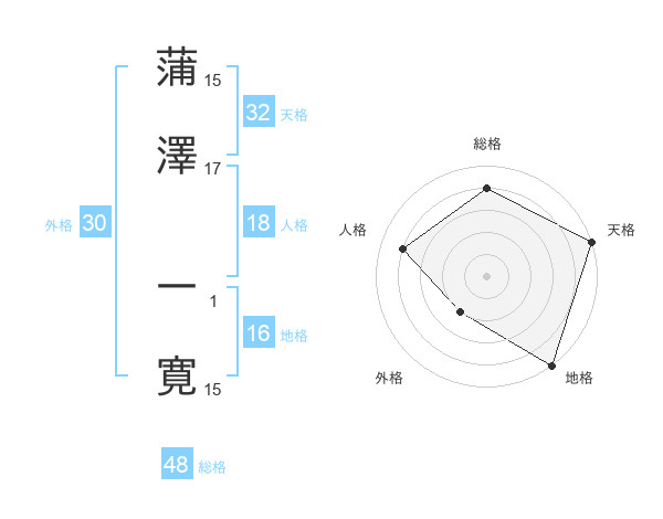 蒲澤 一寛さんの天格は32画の5点!
