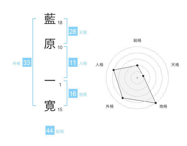 藍原 一寛さんの総格は44画の2点!