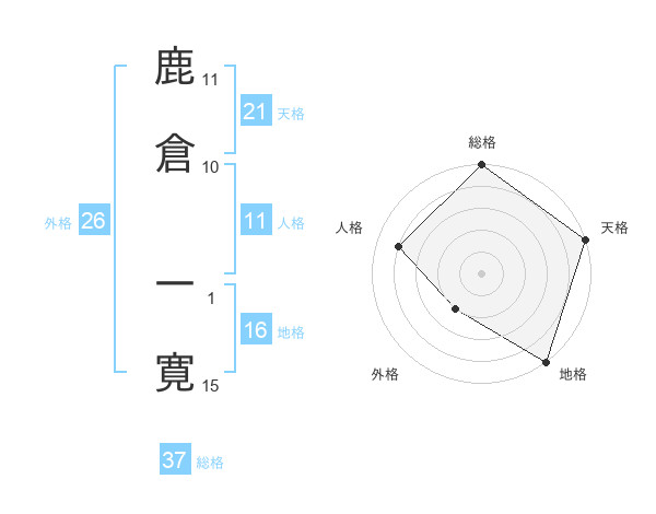 鹿倉 一寛さんの総格は37画の5点!