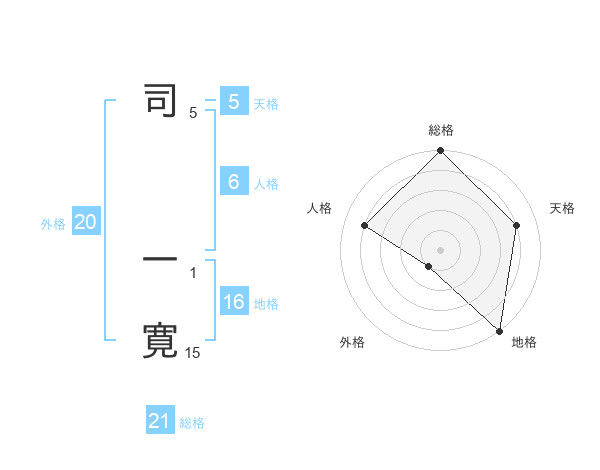 司 一寛さんの総格は21画の5点!