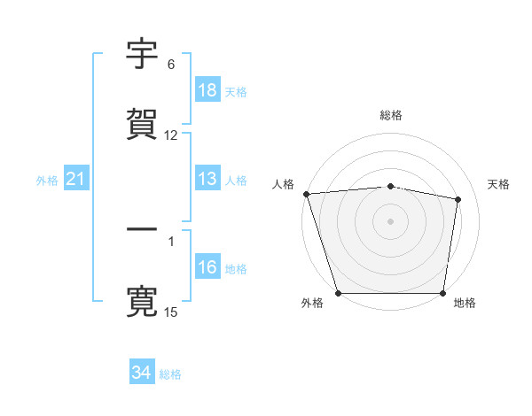 宇賀 一寛さんを姓名の画数から五運を鑑定