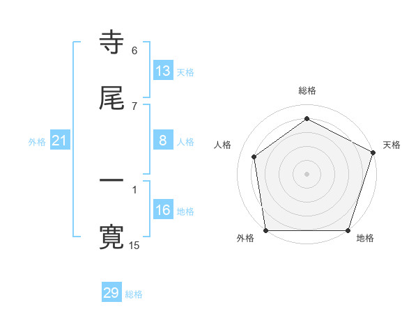 寺尾 一寛さんの総格は29画の4点