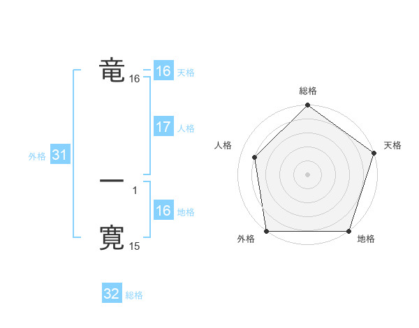 竜 一寛さんの総格は32画の5点