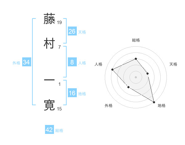 藤村 一寛さんの天格は26画の2点!