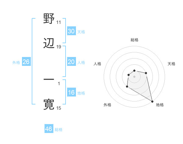 野辺 一寛さんの総格は46画の1点!