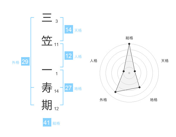 三笠 一寿期さんの総格は41画の5点!