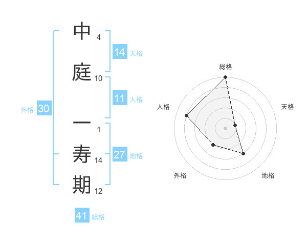 中庭 一寿期さんの総格は41画の5点!
