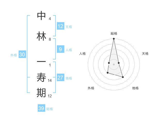 中林 一寿期さんの総格は39画の5点!