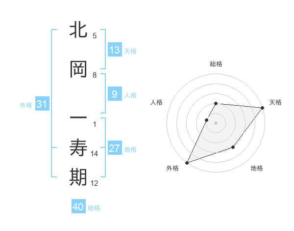 北岡 一寿期さんを姓名の画数から五運を鑑定