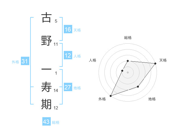 古野 一寿期さんを姓名の画数から五運を鑑定