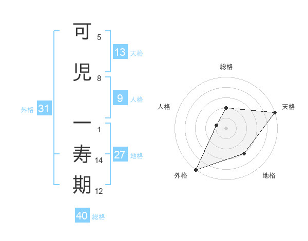 可児 一寿期さんを姓名の画数から五運を鑑定