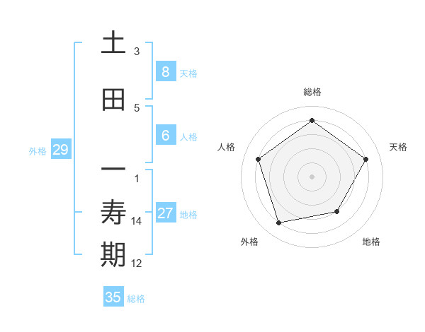 土田 一寿期さんを姓名の画数から五運を鑑定