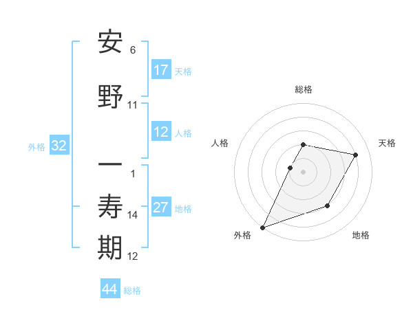 安野 一寿期さんの総格は44画の2点!