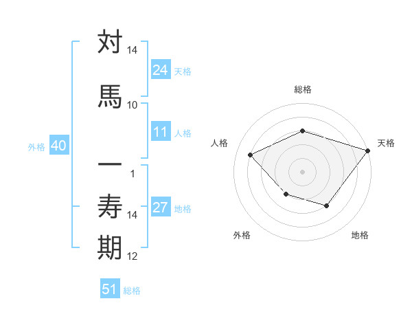 対馬 一寿期さんを姓名の画数から五運を鑑定