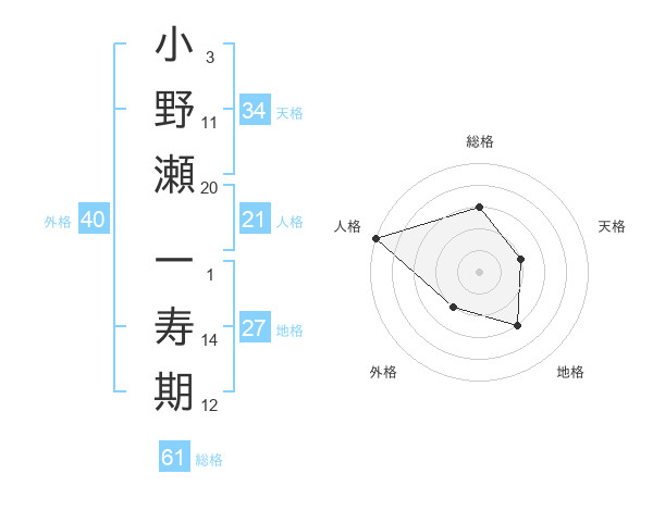 小野瀬 一寿期さんを姓名の画数から五運を鑑定