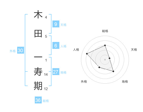 木田 一寿期さんの総格は36画の3点!